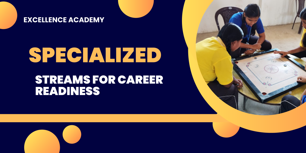 Excellence Academy offers Science streams with options in both Mathematics and Biology, a Commerce stream, and a Humanities stream. These tailored pathways provide students with a focused and in-depth understanding of subjects, paving the way for future academic and career pursuits.